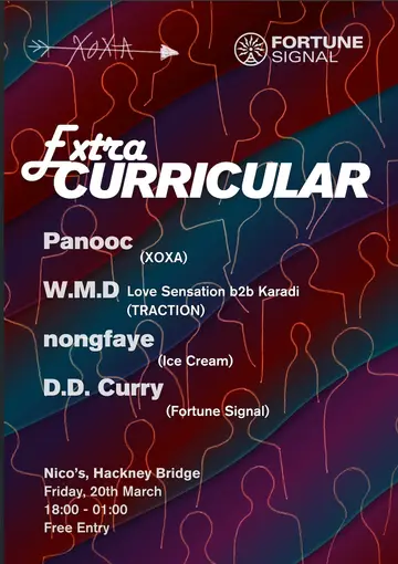 Nico's Bar at Hackney Bridge in London, United Kingdom presents Extraċurriċular at Nico's 2026, a curated electronic music experience on Friday, March 20, 2026, featuring D.D. Curry, Panooc, W.M.D and 1 more artists. This event brings together artists and fans who share a passion for dance music culture and House, Disco sounds.