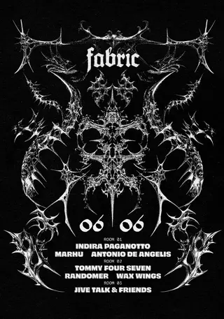 fabric: Indira Paganotto, Tommy Four Seven, Randomer, Marhu, Antonio De Angelis, Wax Wings on June 6, 2026 at fabric, London features Indira Paganotto, Marhu, Antonio De Angelis, Tommy Four Seven, Randomer, Wax Wings and Jive Talk performing techno DJ sets.