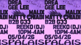 Faem e Li presents: malix & Friends on April 5, 2026 at Palais, London features malix, Drea (ES), GEE LEE and Matty Chiabi performing DJ sets.