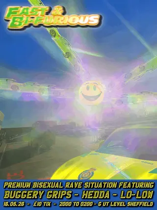 Fast & Bi-Furious Sheffield takes place at Gut Level in Sheffield, United Kingdom on May 16, 2026. Featuring Buggery Grips, HEDDA, LO-LOW. Bass and Jungle sounds all night.