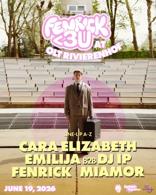 Fenrick <3 U takes place at OLT Rivierenhof in Antwerp, Belgium, on June 19, 2026. This event features a lineup of artists representing the techno and tech house genres. EMILIJA is known for her energetic techno sets and has gained recognition for her performances across Europe. DJ IP brings a blend of tech house and techno to the stage and is recognized for his dynamic mixing style. Fenrick, the event's namesake, is a prominent figure in the techno scene, known for his unique sound and innovative productions. Miamor rounds out the lineup, delivering a selection of tech house tracks that highlight her distinct style. The event features a mix of techno and tech house, showcasing both established and emerging artists in the electronic music landscape.