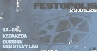 Festopolis @C11 w/ sa+ga, kedakeda & Quibron b2b Stevy Lab takes place at C12 in Brussels, Belgium on May 29, 2026. Featuring sa+ga, kedakeda, Quibron, Stevy Lab. Progressive House and Tech House sounds all night.