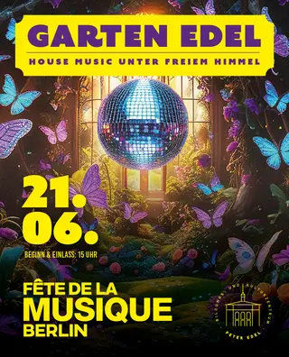 Fête de la Musique 2026 - GARTEN EDEL takes place at PETER EDEL in Berlin, Germany on June 21, 2026. House and Deep House sounds all night.