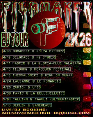 Filmmaker LIVE & Alessandro Adriani takes place at Sameheads in Berlin, Germany on May 16, 2026. Filmmaker is known for his experimental techno sound and has roots in the United States. Alessandro Adriani is an Italian DJ and producer recognized for his contributions to the EBM and techno genres, often associated with the label Mannequin Records. Andrew Thomson, hailing from Australia, is known for his work in the techno scene, blending elements of ambient and experimental sounds. This event features a lineup focused on techno and EBM genres.