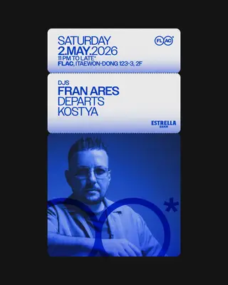Flac in Seoul, South Korea, will host the event "Flac: Fran Ares(Es/ and Dance)" on May 2, 2026. The lineup includes Fran Ares, a Spanish DJ known for his work in the house and tech house genres, and the artist Departs, who specializes in a similar style. Both artists are recognized for their contributions to the electronic music scene, with Fran Ares often associated with energetic rhythms and engaging sets. The event will feature house and tech house music throughout the night.