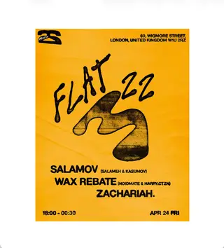 FLAT 22 takes place at TBA - Maya Marylebone in London, United Kingdom on April 24, 2026. Featuring salameh. House and Deep House sounds all night.