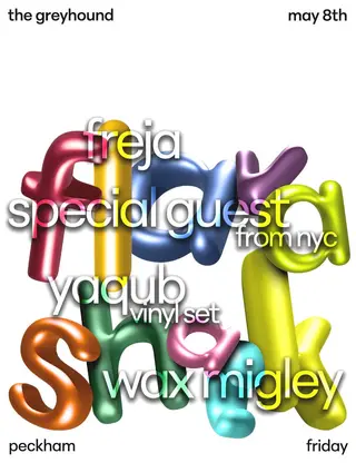 Flavashack After Dark takes place at The Greyhound in London, United Kingdom on May 8, 2026. Featuring Freja. Dubstep and Ghetto Tech sounds all night.