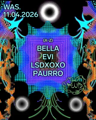 FLUID // BELLA • Evi • LSDXOXO • PAURRO takes place at WAS. in Utrecht, Netherlands on April 11, 2026. Featuring BELLA (NL), Evi (1), LSDXOXO, PAURRO. Techno and House sounds all night.