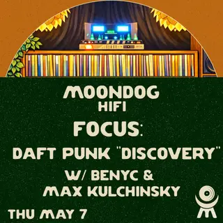 Focus: Daft Punk 'Discovery' W/ Benyc & Max Kulchinsky takes place at Moondog Hifi in New York, United States on May 7, 2026. Featuring Max Kulchinsky.