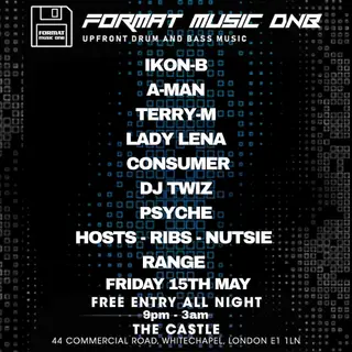Format Music dnb London on May 15, 2026 at The Castle, London features electronic music performances drum & bass DJ sets.
