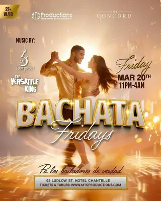 Friday Bachata Night - Traditional Bachata - Mar 20 takes place at Concord NYC in New York City on March 20, 2026. Reggaeton, Latin Bass.