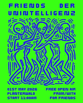 Friends der Unintelligenz takes place at TBA - Plänterwald in Berlin, Germany on May 1, 2026. Featuring DJ ZBB, Kenji Tazaki, Fazee, Elli.on and 1 more. House and Minimal sounds all night.