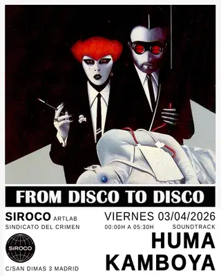 From Disco to disco takes place at Sala Siroco in Madrid, Spain on April 3, 2026. Featuring Kamboya.
