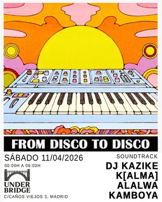 From Disco to Disco x Under Bridge takes place at Under Bridge in Madrid, Spain, on April 11, 2026. The lineup features Kamboya, a DJ and producer known for their contributions to the disco and electronic music genres. This event will showcase a blend of disco and electronic styles, reflecting Kamboya's unique sound and approach to music production.