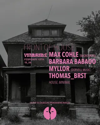 FRONT OF HOUSE #4 on February 13, 2026 at Le Liebe, Paris features electronic music performances house DJ sets.