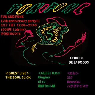 FUN AND FUNK -12th anniversary party!- on May 17, 2026 at Roots, Tokyo features electronic music performances funk / soul DJ sets.