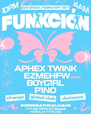 FUNKCIÓN: Genre Fusion on February 6, 2026 at Supernatural Haus, Detroit features p1no and ezmehfw performing club DJ sets.