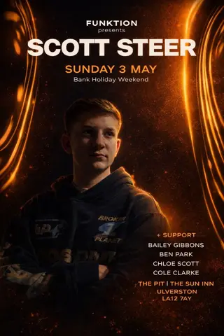 Funktion - Scott Steer takes place at TBA - The PIT - The Sun Inn Ulverston in North, United Kingdom on May 3, 2026. House and Tech House sounds all night.