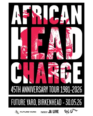 Future Yard presents African Head Charge 45th Anniversary in Liverpool, United Kingdom, on May 30, 2026. The lineup features African Head Charge, a pioneering group known for their fusion of dub and electronica. Originating from the UK, they are recognized for their innovative sound that combines traditional African rhythms with electronic music elements. This event focuses on the genres of dub and electronica.