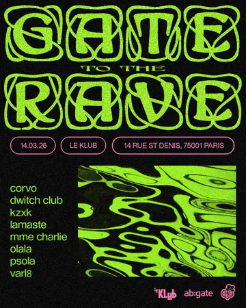 GATE TO THE RAVE takes place at Le Klub in Paris, France on March 14, 2026. Featuring KZXK, Madame Charlie. Techno, Minimal Techno.