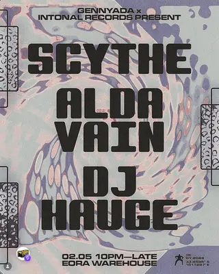Gennyada x Intonal Records Present: Scythe, Alda Vain & DJ Hauge takes place at TBA in Sydney, Australia on May 2, 2026. Featuring DJ Hauge. Trance and Techno sounds all night.
