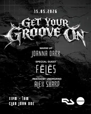 Get Your Groove On on May 15, 2026 at John Doe, Amsterdam features Alex Sharp and Feles performing techno DJ sets.