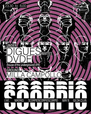 Gilda Club - SCORPIO on May 8, 2026 at Gilda Club, Madrid features DVDE, DIGUES and Milla Campollo performing house DJ sets.
