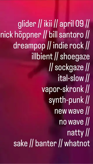 glider takes place at Ikii in Berlin, Germany on April 9, 2026. Featuring Nick Höppner, Bill Santoro. Pop and Post-Punk sounds all night.