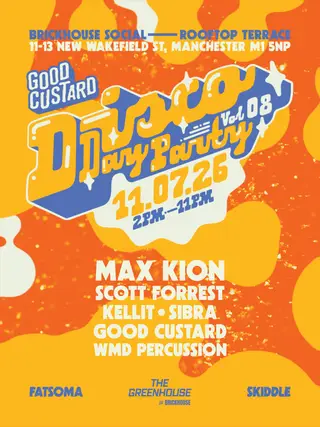 Good Custard presents: Disco Day Party takes place at Brickhouse Social NWS in Manchester, United Kingdom on July 11, 2026. Featuring Max Kion, Kellit. House and Disco sounds all night.