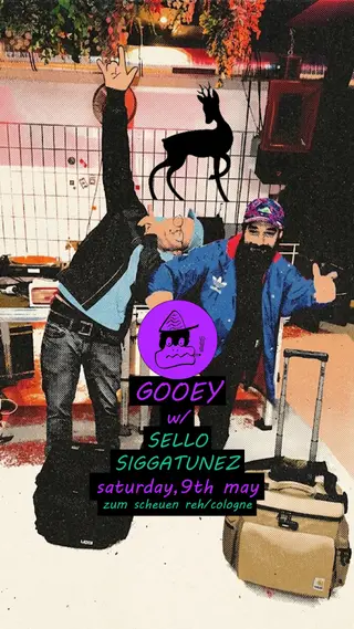 GOOEY on May 9, 2026 at Zum Scheuen Reh, Cologne features Sello and Siggatunez performing house DJ sets.