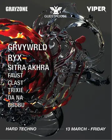 GRAYZONE x VIPER takes place at Guest House in New York, United States on Friday, March 13, 2026. Featuring GRVYWRLD, RYX (1), Sitra Akhra, FAUST (1) and 4 more. Techno.