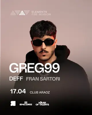 GREG 99 & MORE ARTISTS - by ELEMENTS, CLUB ARAOZ takes place at TBA - Club Araoz, Palermo in Buenos Aires, Argentina on April 17, 2026. A blend of Tech House and Electronica.