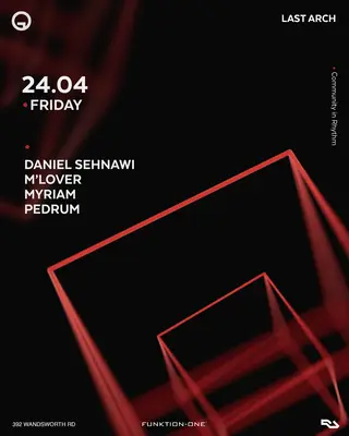 Last Arch, a hidden gem nestled beneath London’s iconic railway arches, is renowned for its intimate atmosphere and commitment to underground sounds. Known for its raw, industrial aesthetic, this venue provides the perfect backdrop for a night of deep house and house music that celebrates the city's vibrant electronic scene. Groovers at Last Arch showcases a lineup steeped in the rich heritage of the genre. Headliner Pedrum, known for his eclectic sets that blend classic house elements with modern grooves, is set to deliver a captivating performance. Joining him are Myriam, an emerging talent who infuses her sets with soulful melodies and infectious rhythms, and Daniel Sehnawi, whose deep, atmospheric soundscapes have garnered attention in London’s club circuit. Expect a night brimming with rhythm and energy as these artists push the boundaries of house music, reflecting the diverse influences that shape London’s nightlife. With its underground vibe and a lineup that epitomizes the essence of house, Groovers promises to be a night where the beats truly resonate.