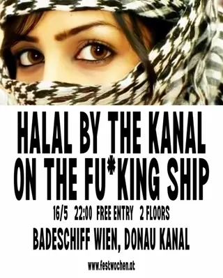 HALAL BY THE KANAL at Badeschiff in Vienna, Austria on May 16, 2026. Featuring Hassandra, Rakans, Jaan-e-Haseena, ADIRA and 2 more. Afrobeat and Club sounds all night.