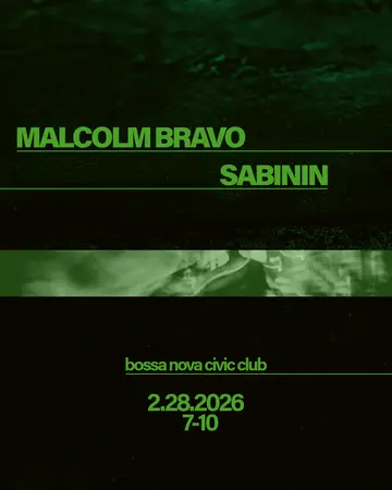 Happy Hour: Malcolm Bravo & Sabinin takes place at Bossa Nova Civic Club in New York City, Unknown on Saturday, February 28, 2026. Featuring Sabinin. House, Deep House.