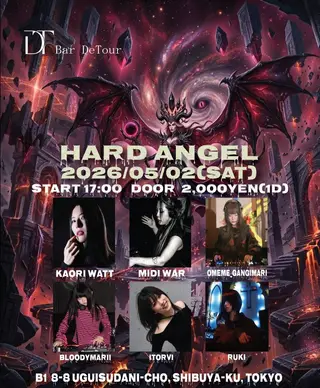 HARD ANGEL takes place at DeTour in Tokyo, Japan on May 2, 2026. Featuring MIDI War, Kaori Watt, omeme_gangimari, Ruki. Techno and Hardcore sounds all night.