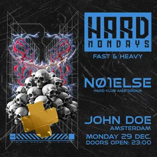Hard Mondays Amsterdam - HARD TECHNO NIGHT takes place at John Doe in Amsterdam, Netherlands on December 29, 2025. Featuring NO1ELSE.