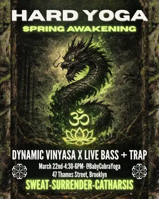 Hard Yoga: Spring Awakening 2026 takes place at the renowned Baby Cobra - Bushwick in New York City on Sunday, March 22, 2026. This event brings together artists and fans who share a passion for dance music culture and Bass, Dubstep sounds.