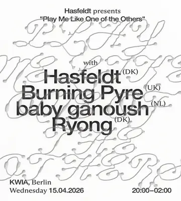 Hasfeldt presents 'Play Me Like One of the Others' takes place at TBA - Hasfeldt presents "Play Me Like One of the Others" in Berlin, Germany on Wednesday, April 15, 2026. Featuring Hasfeldt, Ryong, baby ganoush. Ambient, Dub.