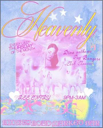 Set at Ridley Road Market Bar, Heavenly 2026 brings together artists and fans in London on Thursday, April 30, 2026. This event brings together artists and fans who share a passion for dance music culture and Disco, Pop sounds.
