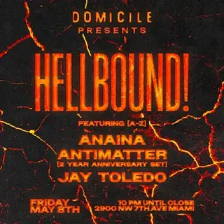 HELLBOUND Miami debut takes place at Domicile in Miami, United States on May 8, 2026. Featuring ANTIMATTER, Jay Toledo. Techno sounds all night.