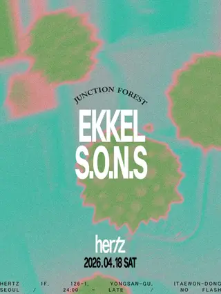 Hertz in Seoul, South Korea, will host the event "Hertz 헤르츠: *Junction Forest' S.O.N.S with Ekkel" on April 18, 2026. The lineup features Ekkel, a house producer known for his work with Ute.Rec and hailing from Norway. Joining him is S.O.N.S, recognized for his contributions to the club genre. The event will showcase house and club music, highlighting the styles of both artists.