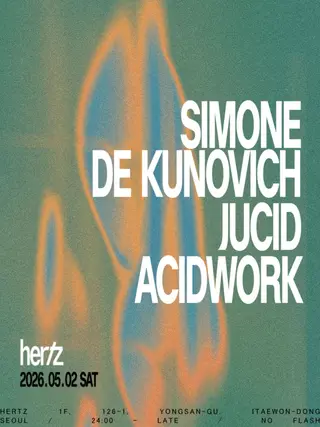 Hertz 헤르츠 meets: Simone de Kunovich (Ultimo Tango, IT) features a lineup that includes Simone de Kunovich, Jucid, and Acidwork. This event showcases House and Club music in Seoul. Join the artists for an evening dedicated to electronic music on May 2, 2026.
