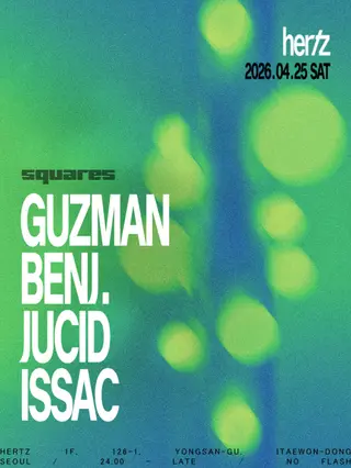 Hertz 헤르츠 presents: 'Squares London Showcase (UK)' will take place at Hertz in Seoul, South Korea, on April 25, 2026. This event will feature artists Guzman, Issac., and Jucid, showcasing house and club music genres. Guzman is known for his work in the house music scene and has made a name for himself through various releases on respected labels. Issac., an emerging talent in the club genre, is recognized for his energetic sets and innovative sound. Jucid rounds out the lineup, contributing his distinctive style to the event, further enriching the showcase's diverse offerings.