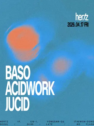 Hertz 헤르츠 Selectors: Baso Jucid Acidwork on April 17, 2026 at Hertz, Seoul features Baso, Acidwork and Jucid performing house DJ sets.