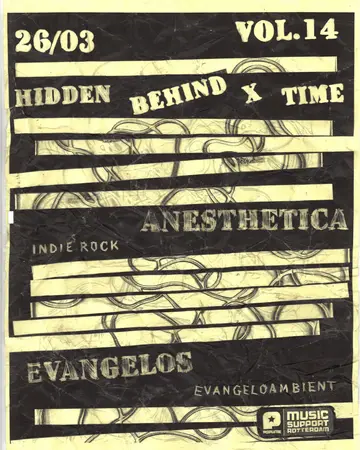 HIDDEN BEHIND X TIME VOL.14 – ANESTHETICA, EVANGELOS takes place at Time is the new space in Rotterdam, Netherlands on Thursday, March 26, 2026. Experimental.