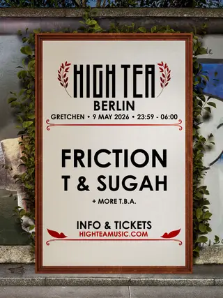 Set at Gretchen, HIGH TEA Berlin 2026 brings together artists and fans in Berlin on Saturday, May 9, 2026, featuring Friction and T & Sugah. This event brings together artists and fans who share a passion for dance music culture and Drum & Bass sounds. Gretchen has hosted Drum & Bass events in Berlin as part of the area's regular club programming. It draws 2 artists and fans seeking authentic Drum & Bass music in Berlin. Designed for a discerning audience, Gretchen's programming draws fans of Drum & Bass music across Berlin. The production is designed to showcase the depth and diversity of contemporary electronic music.