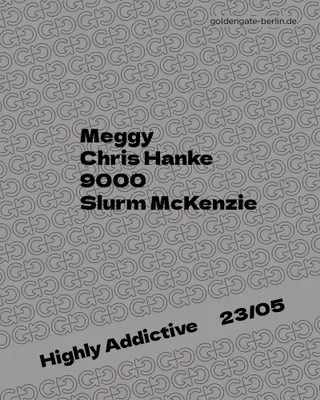 Highly Addictive on May 23, 2026 at Golden Gate, Berlin features Meggy, Chris Hanke and Slurm McKenzie performing DJ sets.