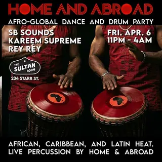 Home and Abroad on April 3, 2026 at The Sultan Room, New York City features electronic music performances afrobeat DJ sets.