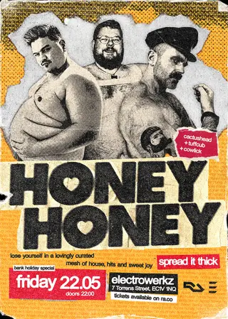 HONEY HONEY takes place at Electrowerkz in London, United Kingdom on May 22, 2026. House and Pop sounds all night.